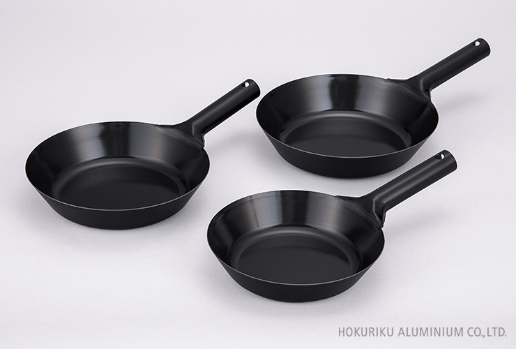 表面は透明シリコーン樹脂塗装なので使い始めに空焼きすることなく使え、使うほどに油が馴染んで使い勝手の良いフライパンです。